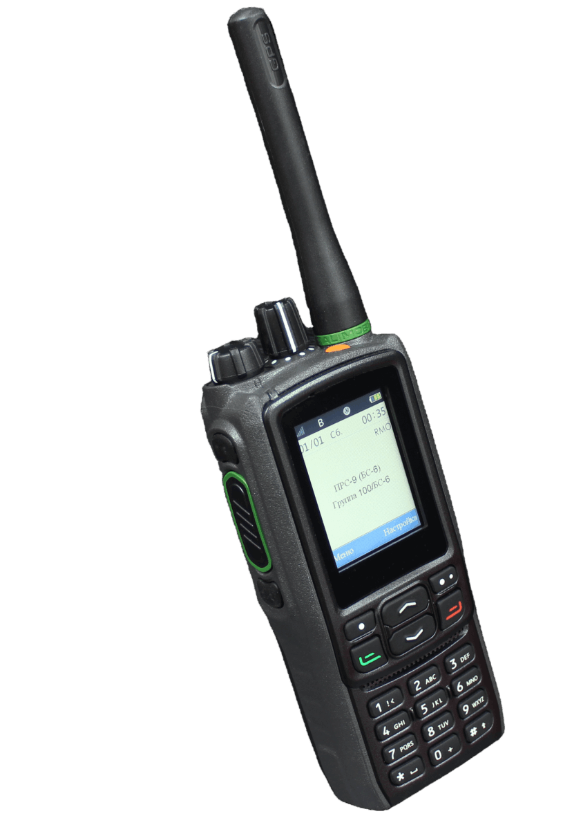 Степень защиты IP67. Терминал поддержи-вает как аналоговый, так и цифровой режим. В качестве опций предлагаются встроенные GPS/ГЛОНАСС- приемник и модуль Bluetooth. Батарея высокой емкости обеспечивает до 15 часов непрерывной работы в цифровом режим